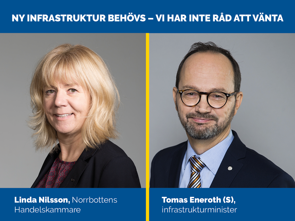 Hon och Tomas Eneroth, infrastrukturminister, intervjuas med anledning av den debattartikel som 16 riksdagsledamöter från fyra partier samt handelskamrarna i norr skrev i Dagens Samhälle tidigare i veckan. I debattartikeln kräver handelskamrarna och den breda uppslutningen politiker att industrins stora investeringar matchas med ny infrastruktur, för en modern järnväg mellan Gävle och Luleå.