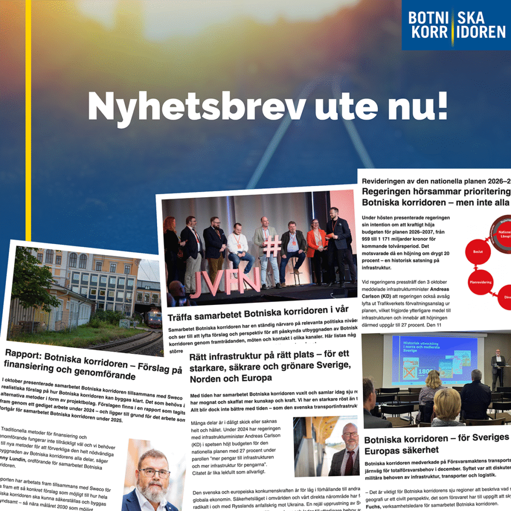 Läs Botniska korridorens nyhetsbrev HÄR, om förslagen och arbetet för den helt nödvändiga utbyggnaden om Botniska korridoren. Våra mål för…