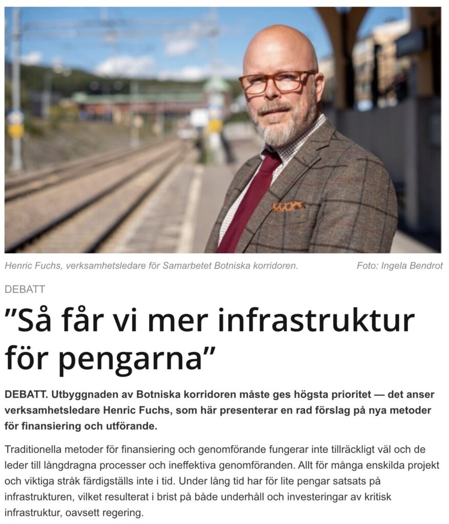 Med ett webbinarium 14 oktober lanserar vi rapporten ”Botniska korridoren – förslag på finansiering och utförande”, där vi föreslår: att…